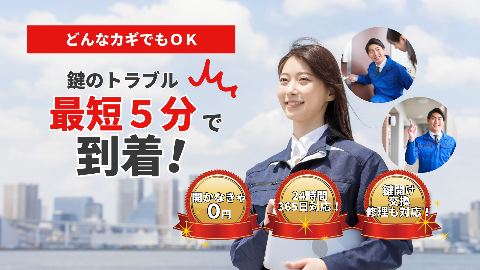 最短20分で現場に駆けつけます。鍵の状態を確認し、正確な料金をご提示します。ご納得いただいてから作業を開始します。
